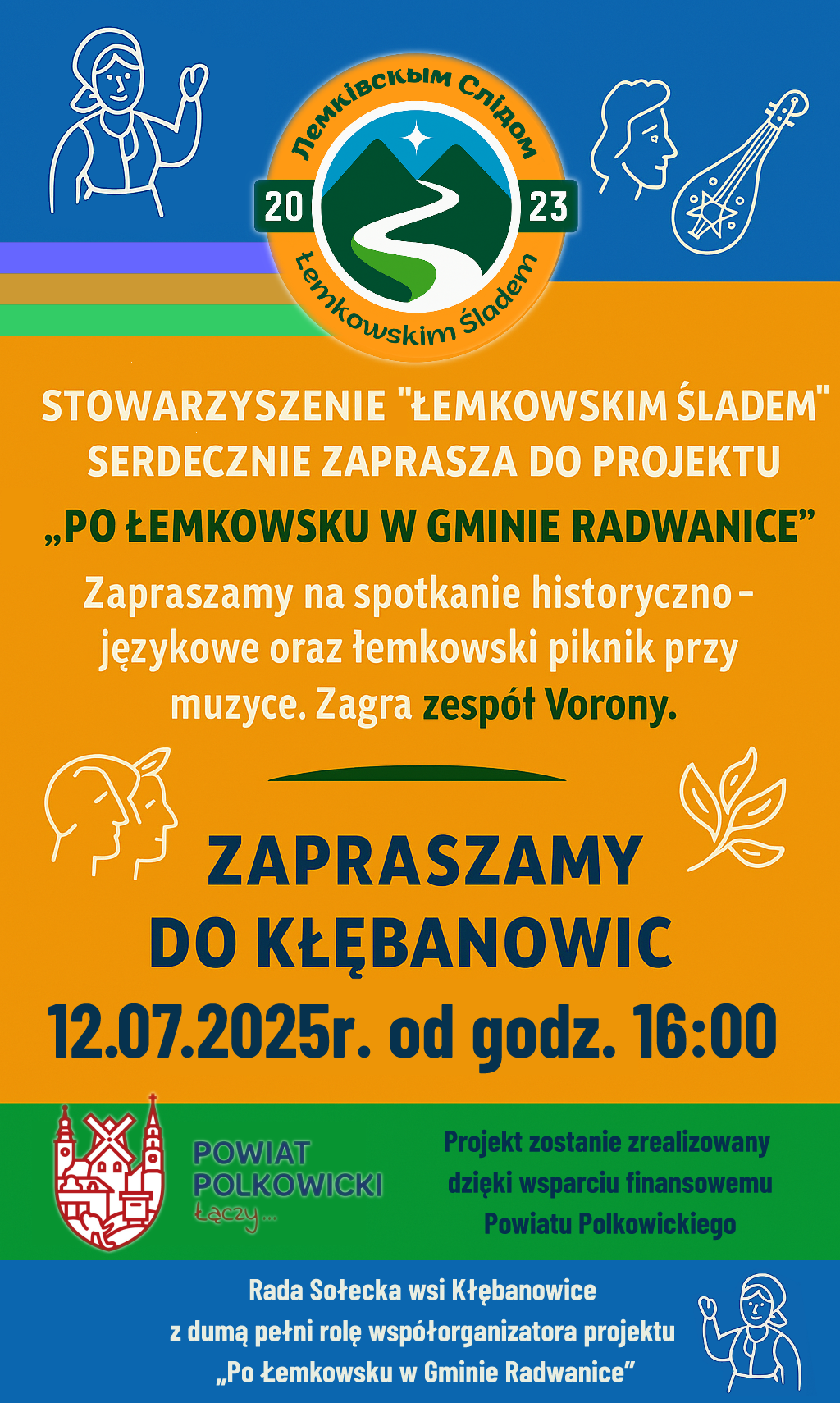 Rada Sołecka wsi Kłębanowice z radością i zaangażowaniem włącza się w działania na rzecz promocji dziedzictwa kulturowego, pełniąc rolę współorganizatora projektu „Po łemkowsku w Gminie Radwanice”. To wyjątkowe przedsięwzięcie ma na celu przybliżenie mieszkańcom oraz gościom bogatej tradycji i historii Łemków – jednej z najciekawszych mniejszości w Polsce. Wspólna inicjatywa stanowi wyraz troski o zachowanie różnorodności kulturowej naszego regionu i budowanie mostów między pokoleniami poprzez wspólne doświadczenie kultury, języka i obyczajów.